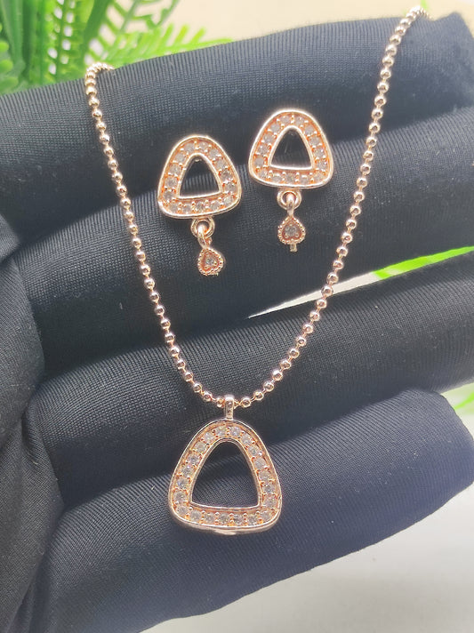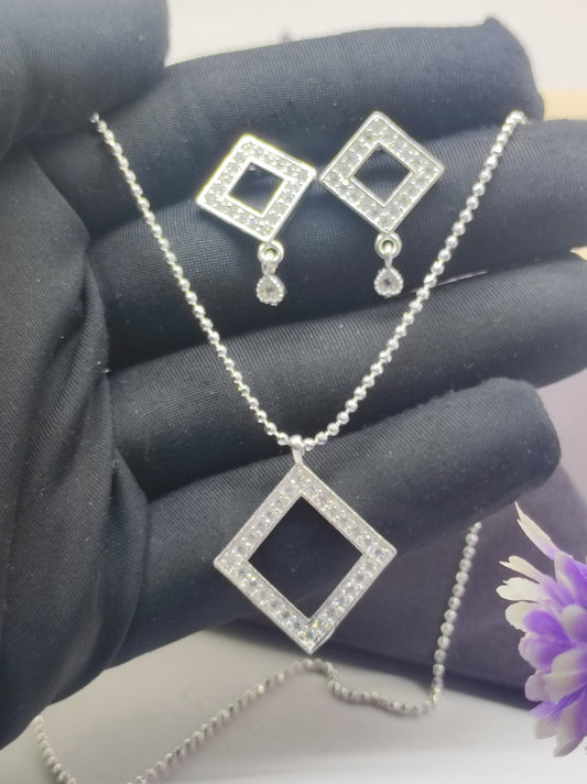 Elegant Silver-Tone Triangle Pendant Necklace & Earring Set