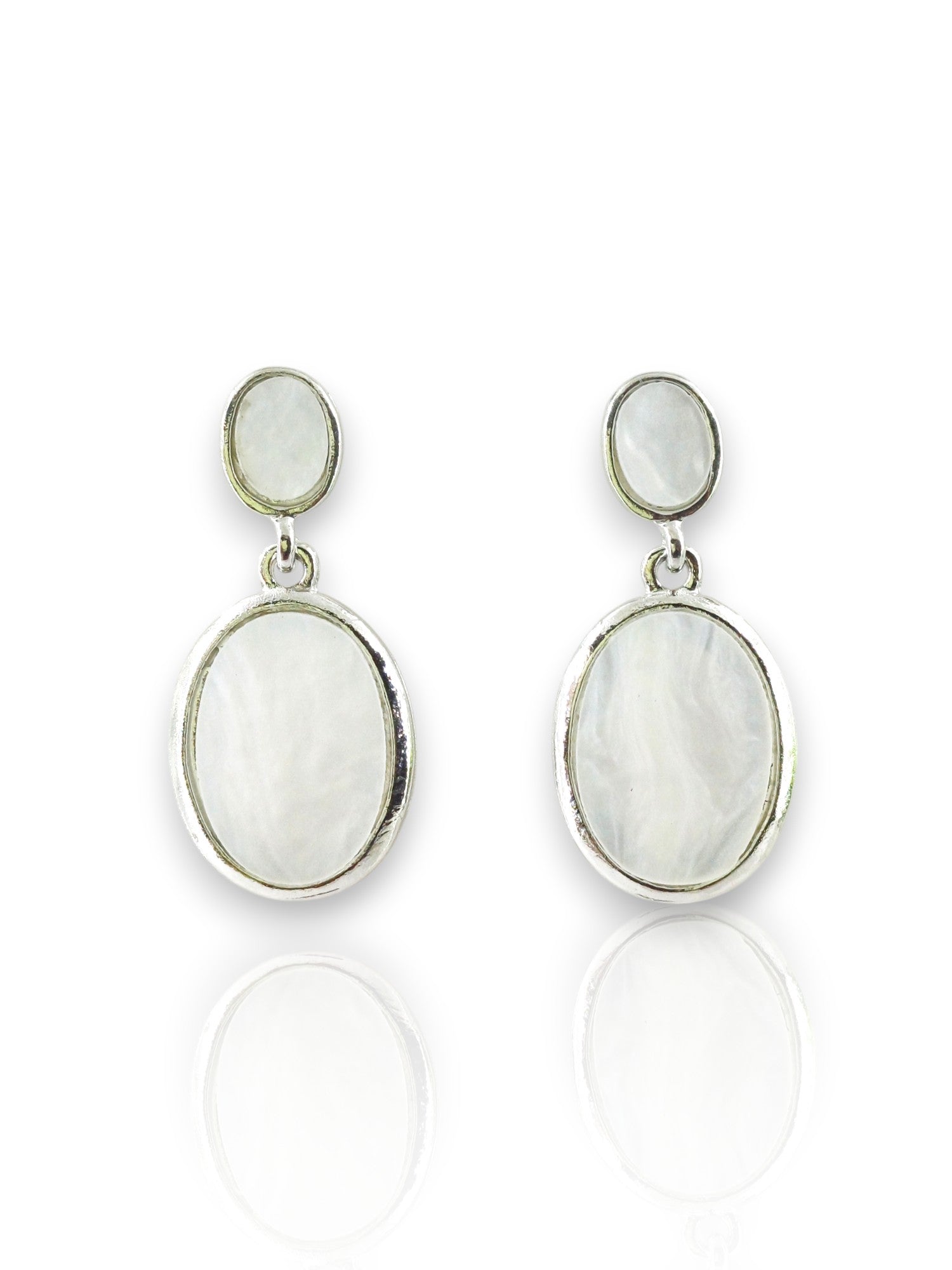 These oval drop earrings exude timeless sophistication with their simple yet graceful silhouette. The polished white or rose gold-plated frames surround a radiant, shell-like inlay, creating an elegant accessory for any look.