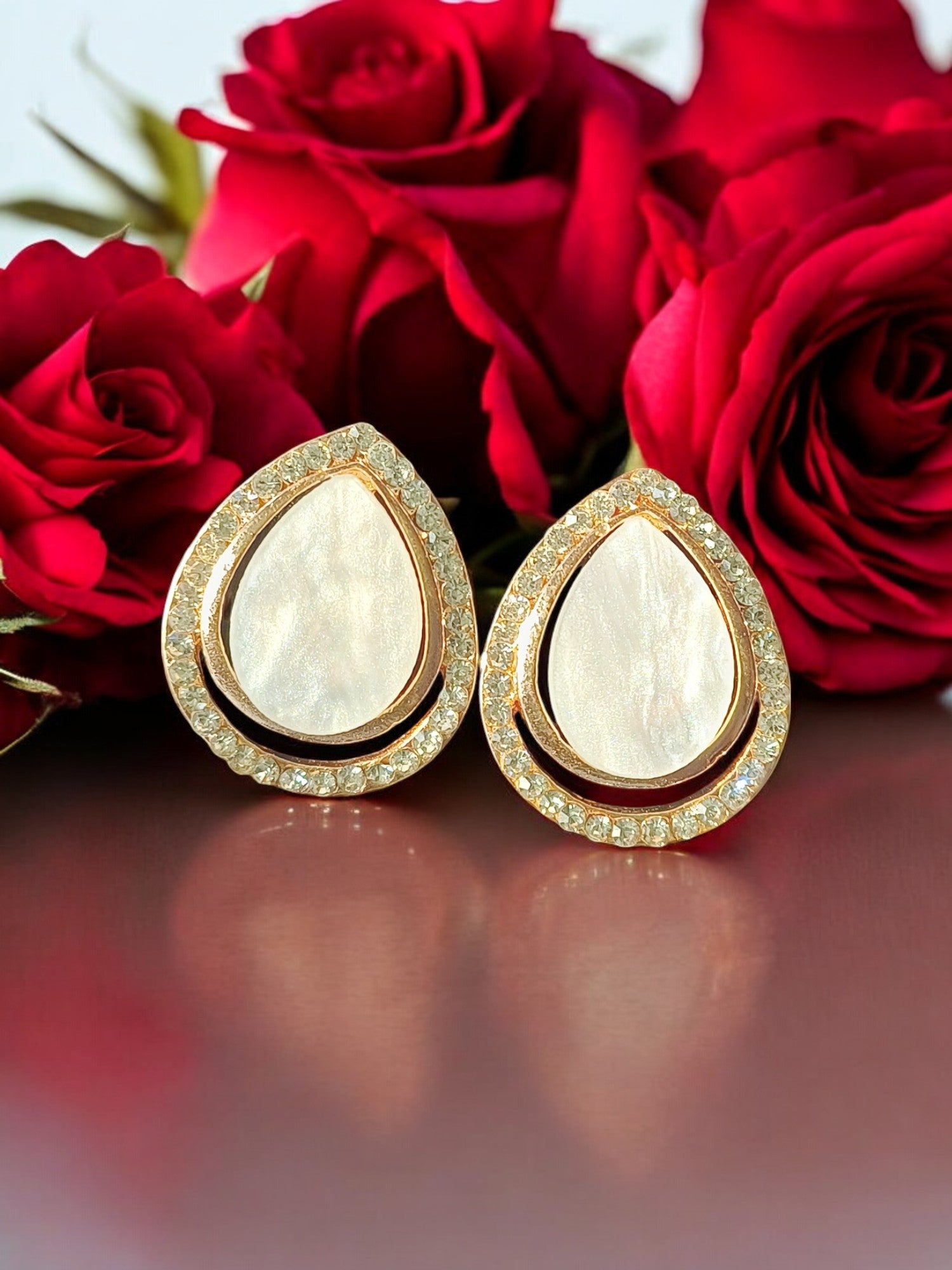 Teardrop Crystal Stud Tops – Rose Gold & White Gold Plated 07